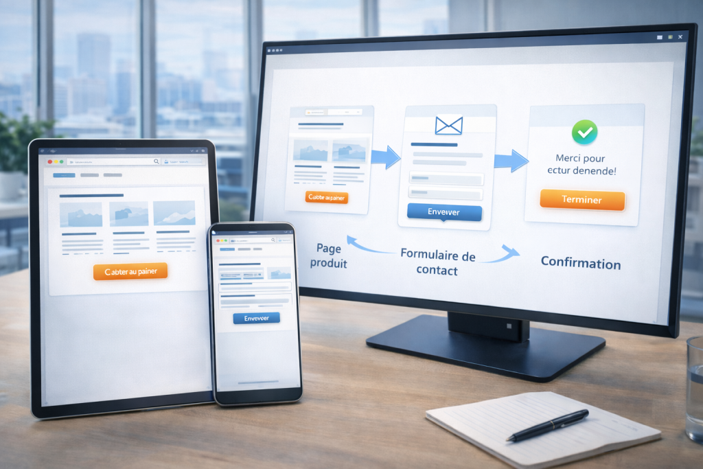 Nous restructurons les étapes clés, clarifions les appels à l’action, optimisons les formulaires et éliminons les distractions pour que chaque utilisateur progresse naturellement vers votre objectif : achat, réservation, soumission ou prise de rendez-vous.